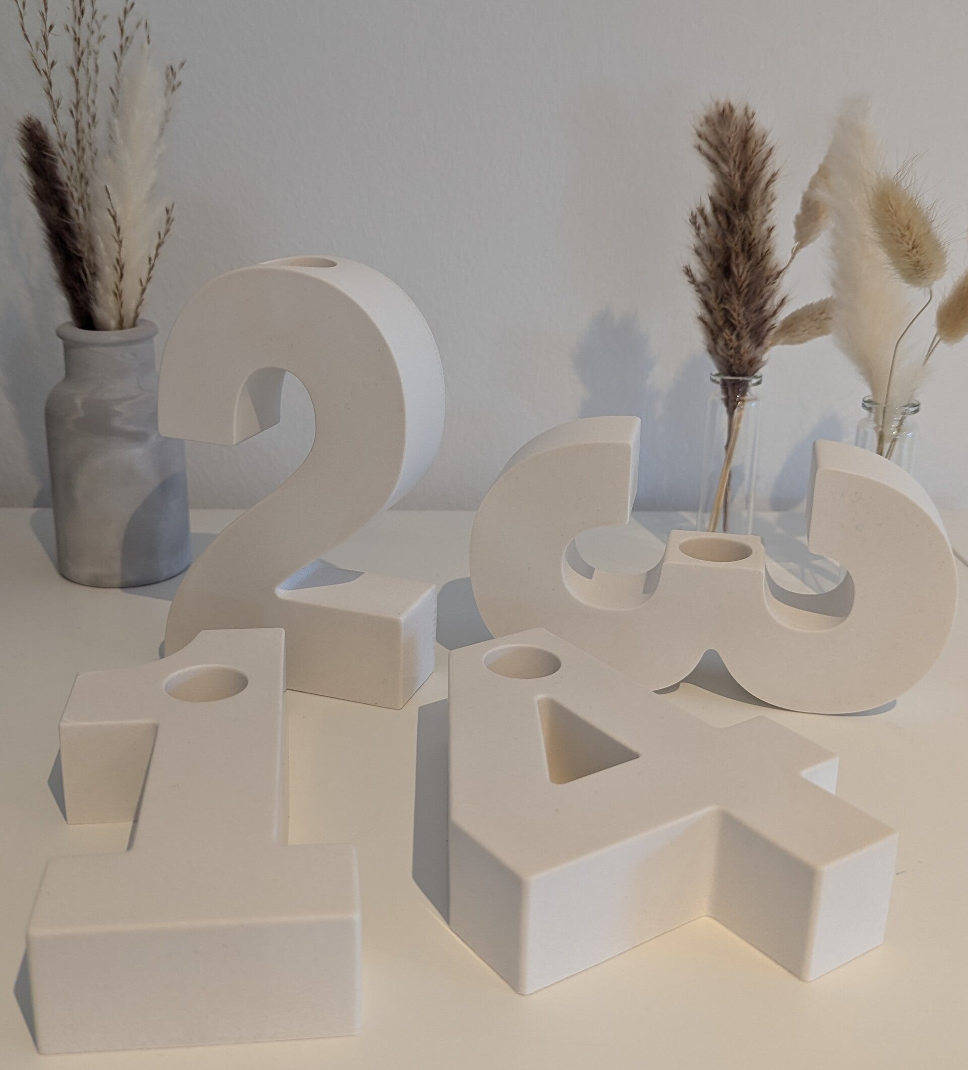 Im aufrechten Stand ist jede zahl 13,5 cm -14,5 cm hoch und haben eine Tiefe von ca 3 cm.