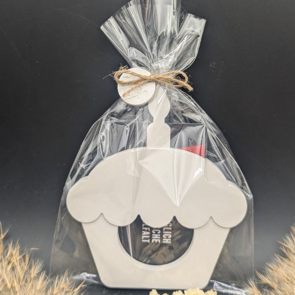 Ich erhaltet dieses Produkt als Einzelteile (siehe Bild 4). So könnt Ihr Geld oder einen Gutschein eurer Wahl in die Torte stecken und diese verpacken.